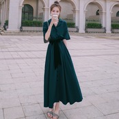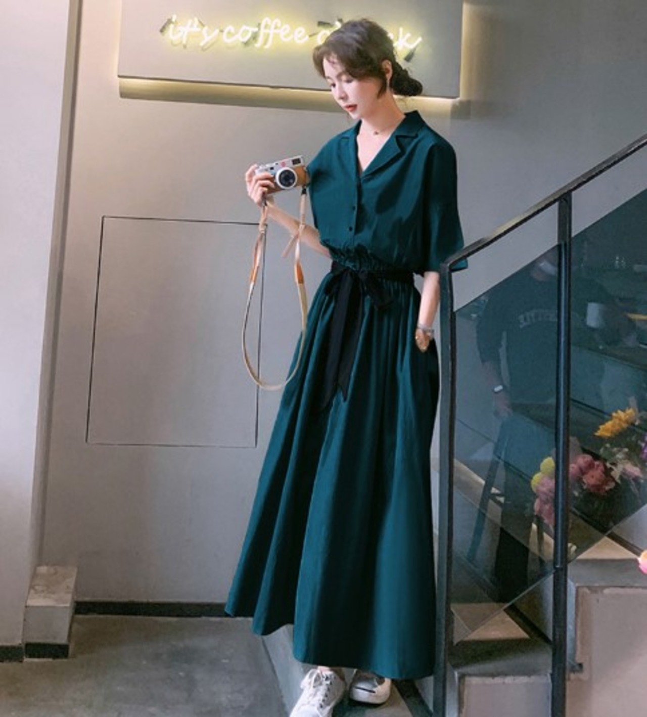 レディースファッション/レディース/春夏/ワンピース/ワンピ/OP/Vネック/半袖/ハイウエスト/着やせ効果/スタイルアップ/Aライン/ロング丈/大人可愛い/レディースレトロ/上品/オフィス/ディナー/おしゃれ/二次会/流行