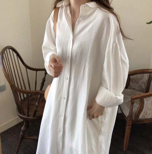 たっぷりロングで雰囲気つくる、大人のためのシャツワンピ