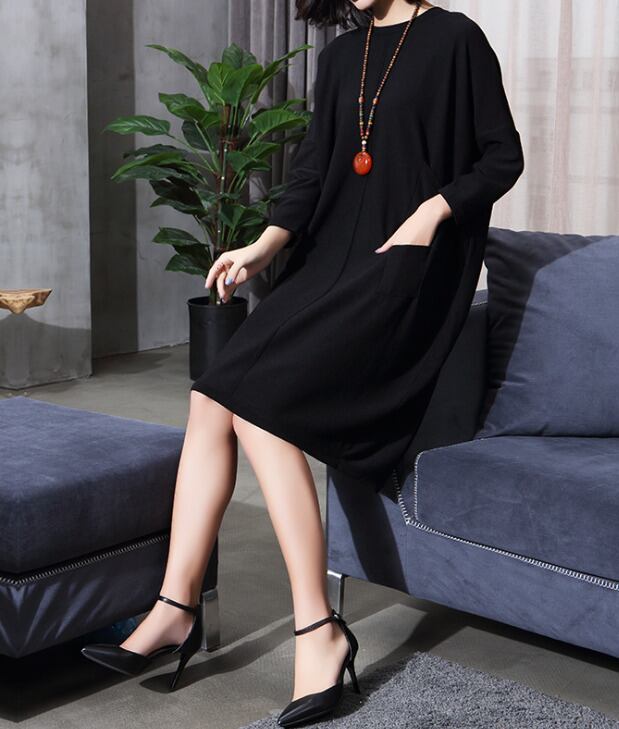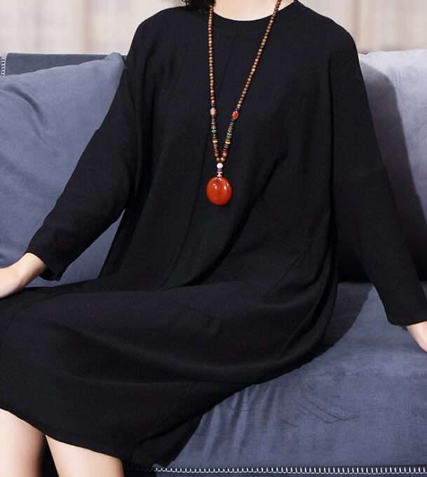 シンプルワンピース/ゆったりシルエット/ひざ丈ワンピース/ベーシックな色味/1枚あると便利/着やすいワンピース