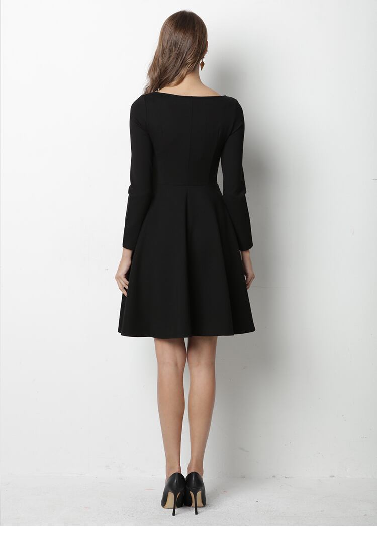 レディース/ワンピース/ひざ丈/ミドル丈/2ピース風/フレアスカート/長袖/Vネック/フォーマル/ブラック/シンプル/セクシー/おとなかわいい/OL/デート/オフィス/通勤/秋冬/ワンピ/フェミニン/タイト