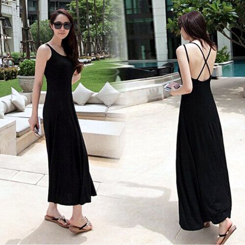 レディースファッション/レディース/春夏/ワンピース/ワンピ/OP/ノースリーブ/バッククロス/韓国ファッション/スタイルアップ/スリット/ロング丈/普段使い/リゾート/夏物/セクシー/ディナー/おしゃれ/流行