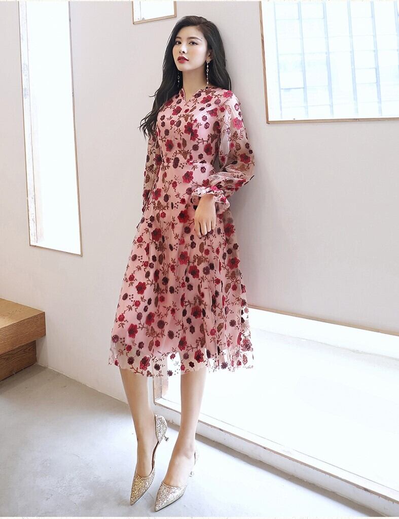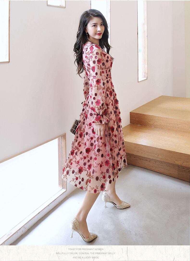 レディースファッション/レディース/ワンピース/長袖/ひざ丈/ミドル丈/デート/フレア/抜け感/透け/スリム/大きいサイズ/体型カバー/お出かけ/かわいい/韓国