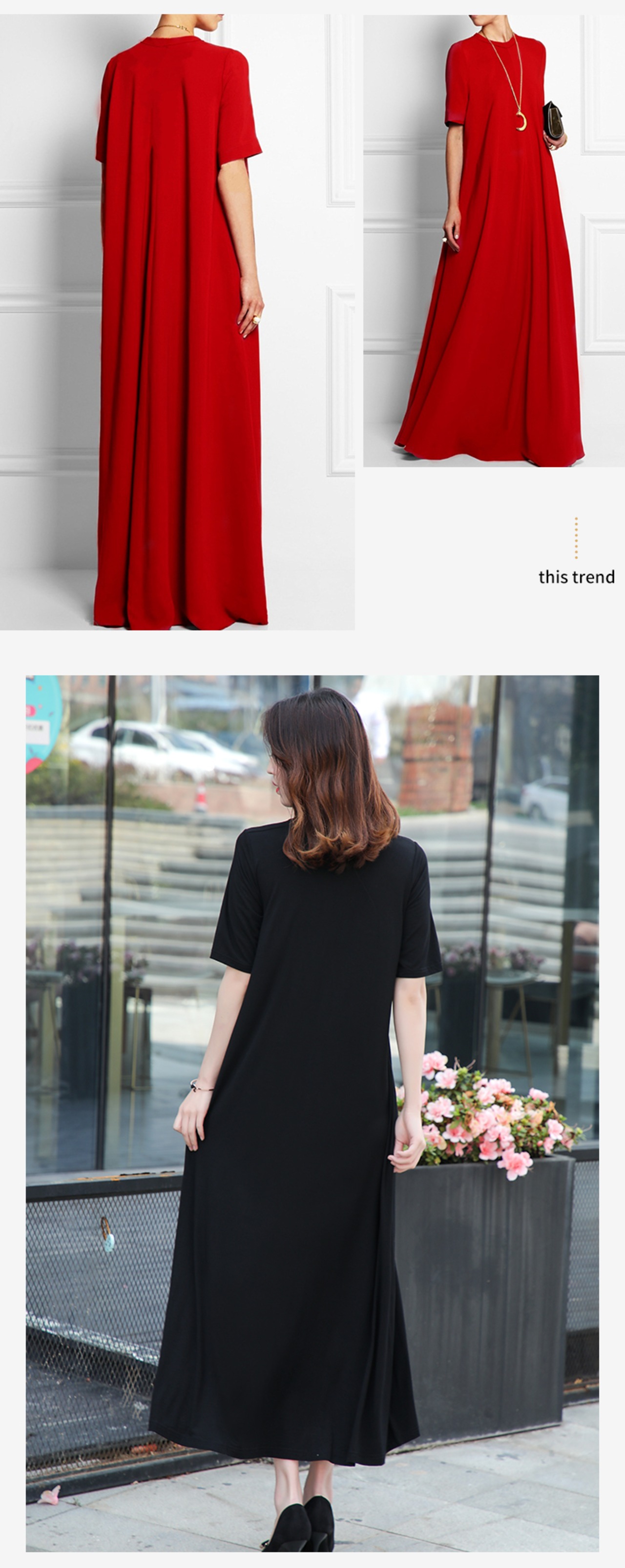 ワンピース/マキシ/マキシ丈/半袖/レディース/ファッション/オシャレ/オトナ女子/婦人服/大きいサイズ/カジュアル/スリム/ドレス/韓国/オルチャン/ゆったり/体型カバー/お出かけ/ブラック/レッド/S/M/L/モーダル