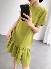シャツ/ブラウス/トップス/半袖/ワンピース/ドレス/フリル/レディース/ファッション/グリーン/ブラック/S/M/L/XL