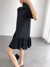 シャツ ブラウス 半袖 ワンピース ドレス フリル スカート レディース ファッション グリーン ブラック 夏 新作 レース 無地 ゆったり サマー シンプル オシャレ cnalbss093003 | BOUQUET