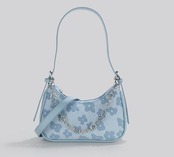 フラワーモチーフがかわいいミニバッグ。普段持ちあるく小物アイテムが入るほどよいサイズ感も魅力的なポイントです。